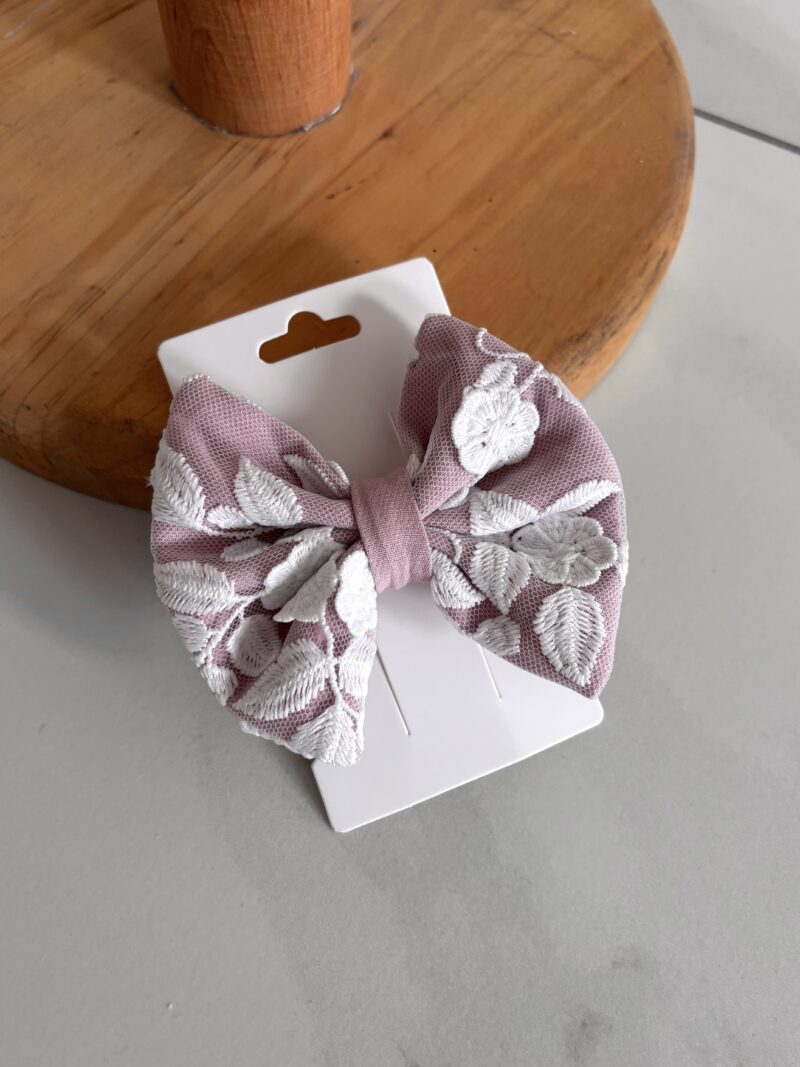 Kokardka z koronką do wyboru: opaska na bez uciskowej tasiemce lub spinka.
