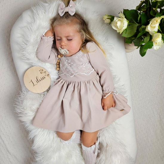 Zjawiskowa sukienka Anabella idealna na każdą wyjątkową uroczystość. Góra z miękkiej koronki. Rozłożysta spódniczka z organzy, w pasie piękne perełki. Podwójna zdobiona kokarda nadaje dodatkowego uroku. Możliwość zamówienia z kokardą lub bez – przy domówieniu kokardy jest ona doszyta na stałe.